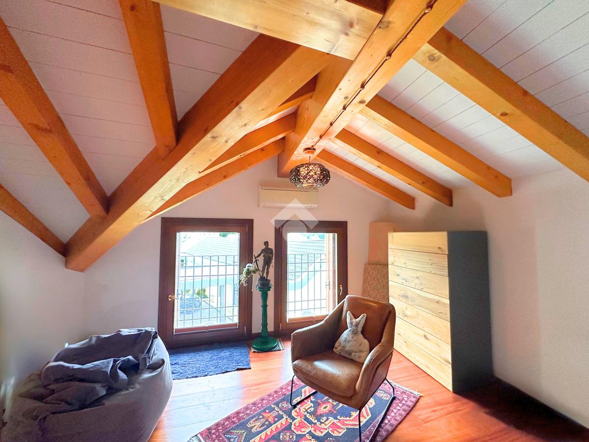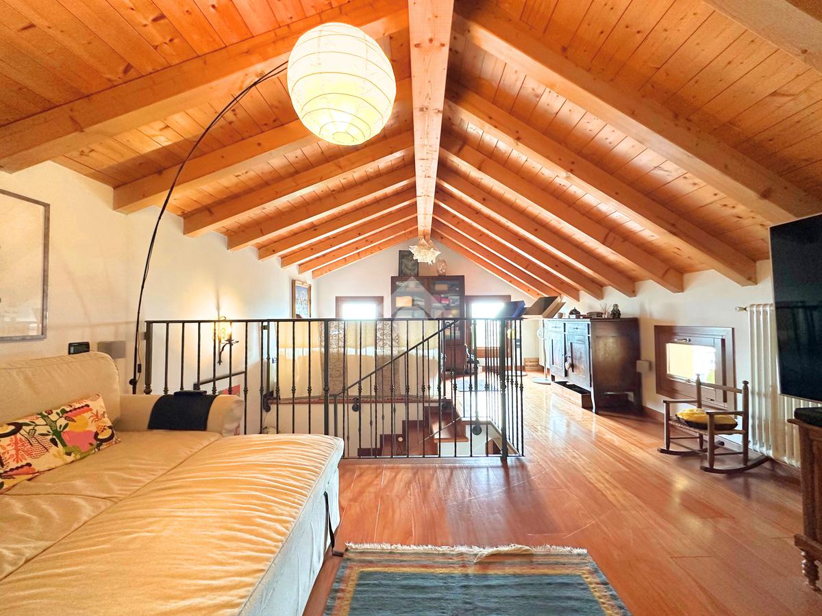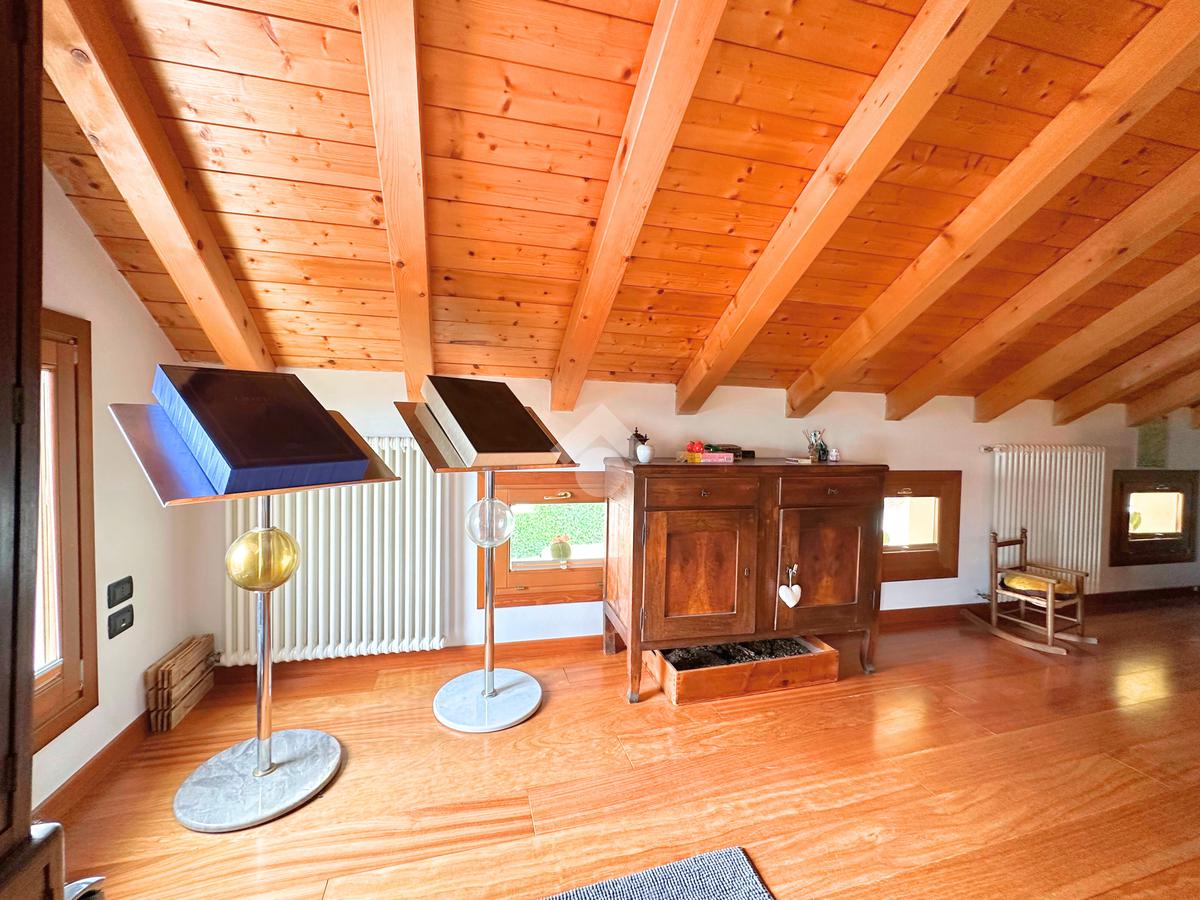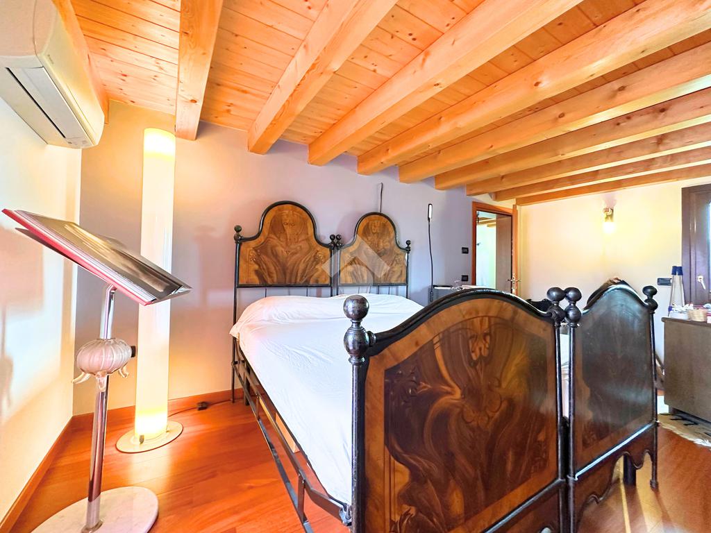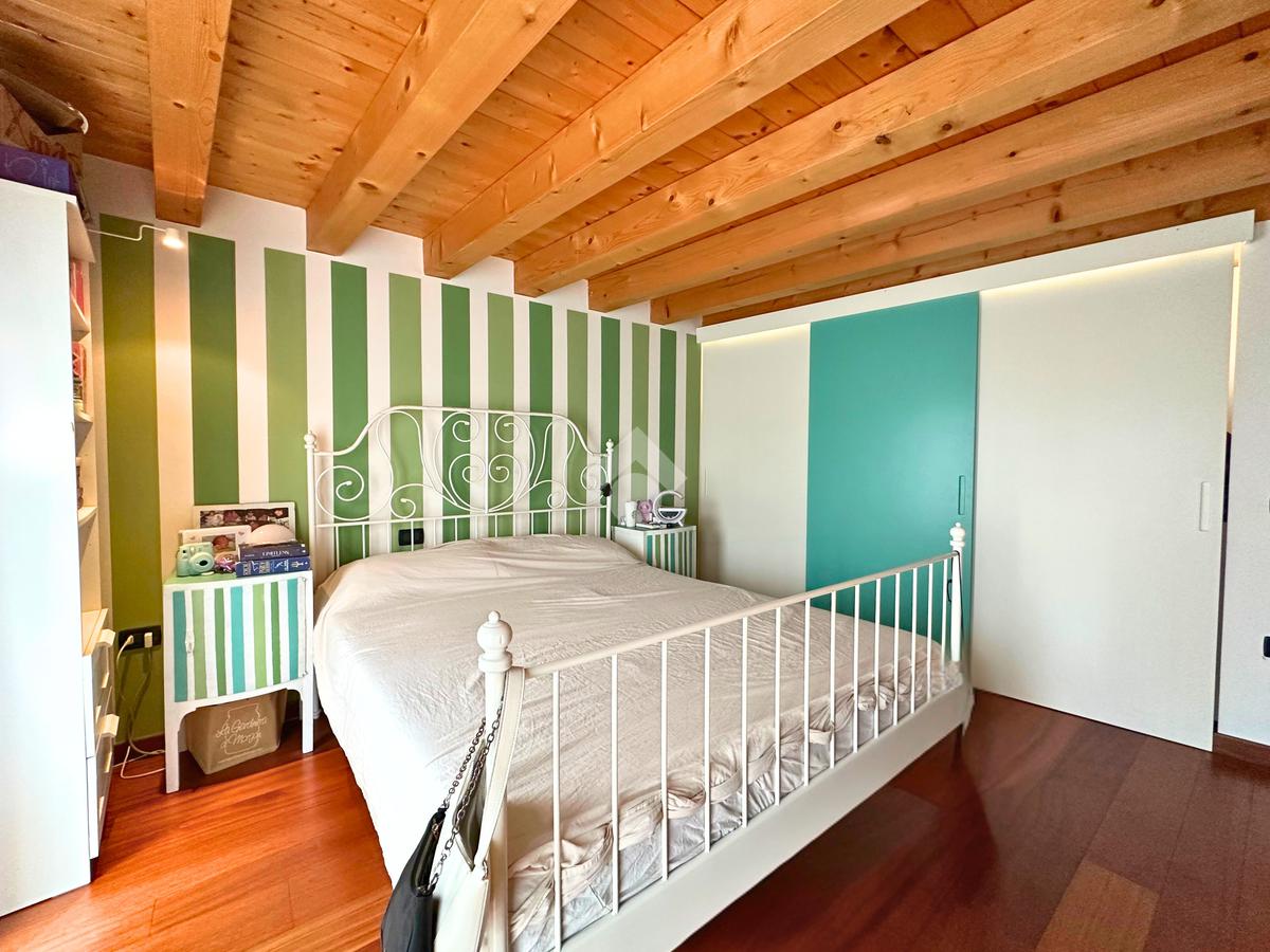 Salendo al piano mansardato si sviluppa un’ulteriore grande camera matrimoniale con cabina armadio e un ampio ambiente dedicato a studio, perfetto come spazio privato o lavorativo.