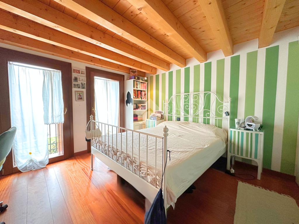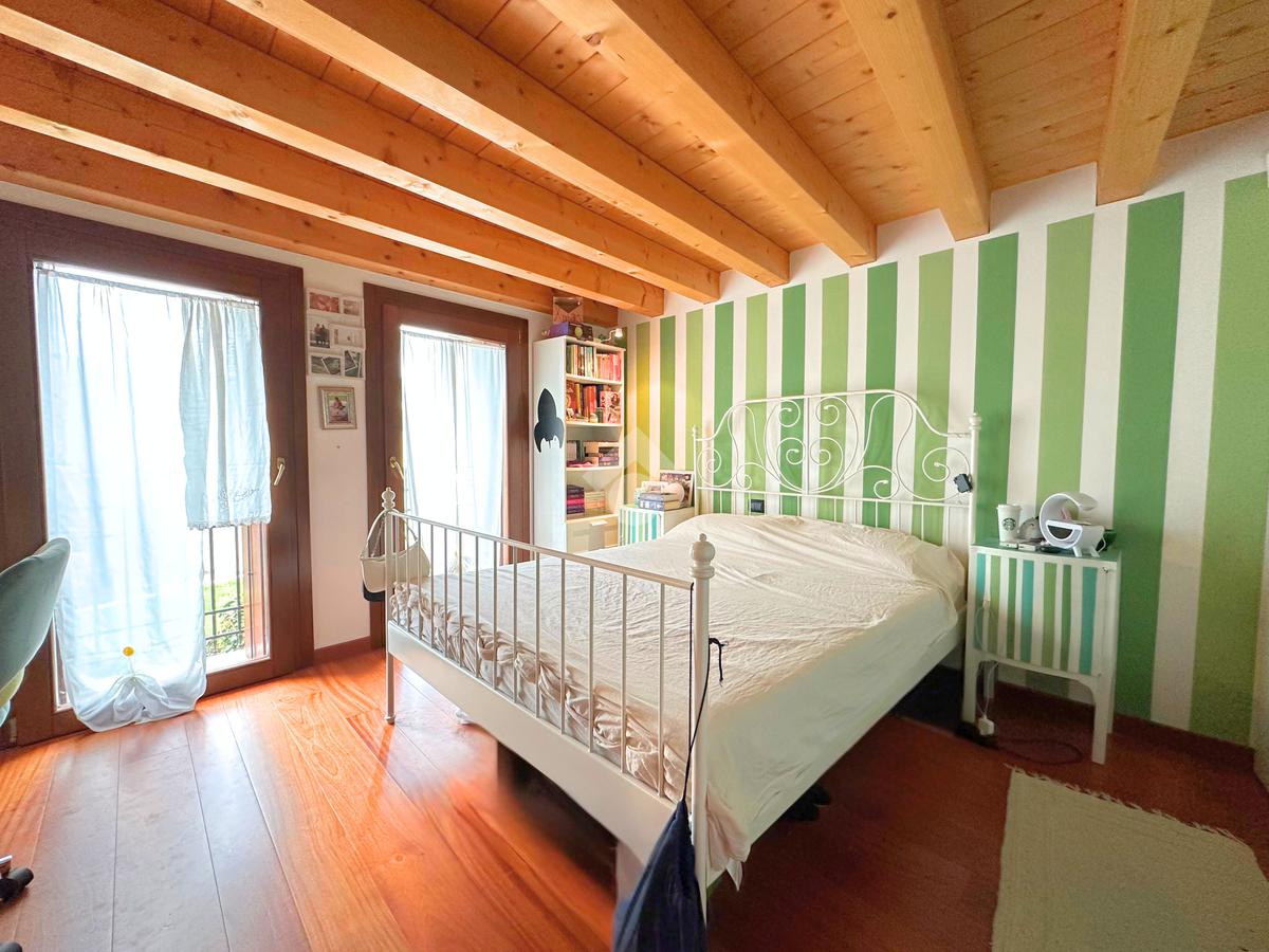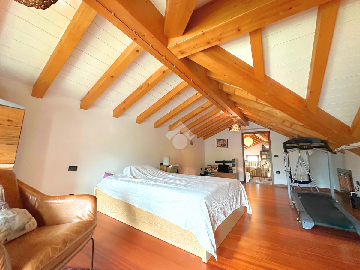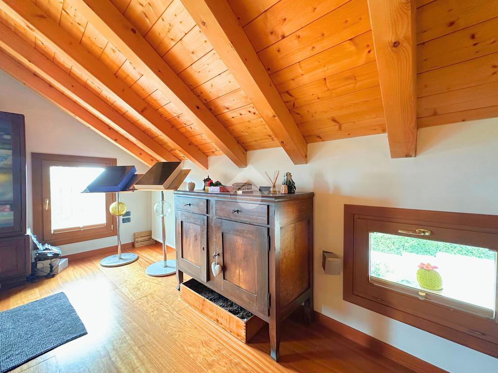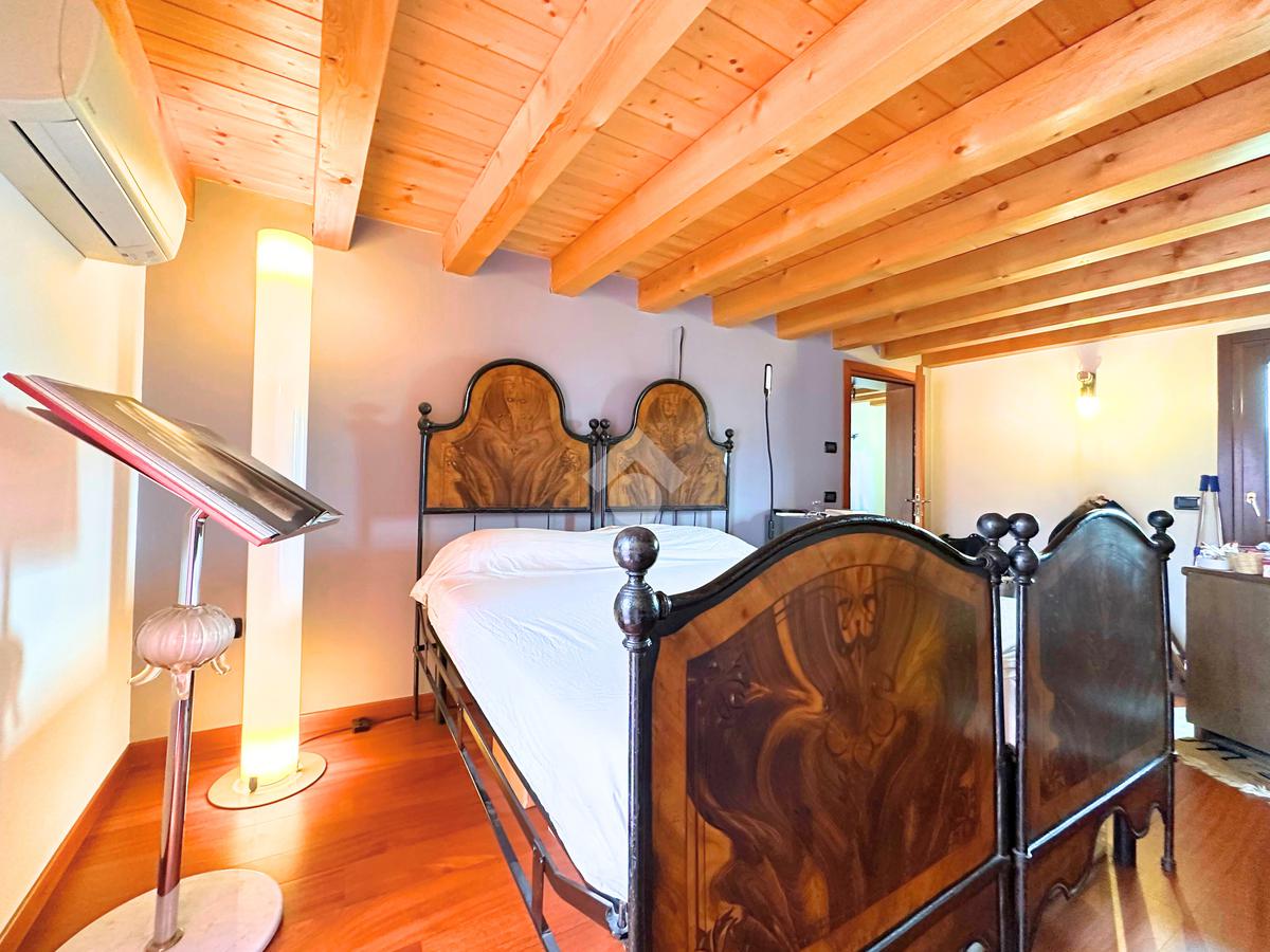 Salendo al piano mansardato si sviluppa un’ulteriore grande camera matrimoniale con cabina armadio e un ampio ambiente dedicato a studio, perfetto come spazio privato o lavorativo.