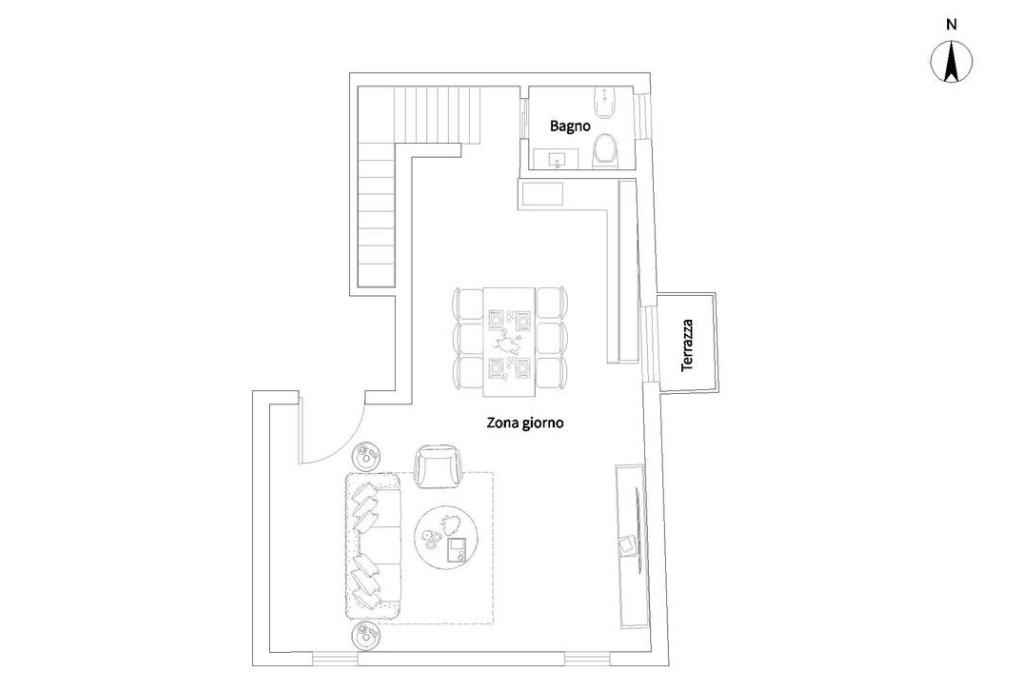 Al primo piano si sviluppa la luminosa zona living di 45 mq, un ampio open space che integra soggiorno e cucina con accesso al terrazzo.