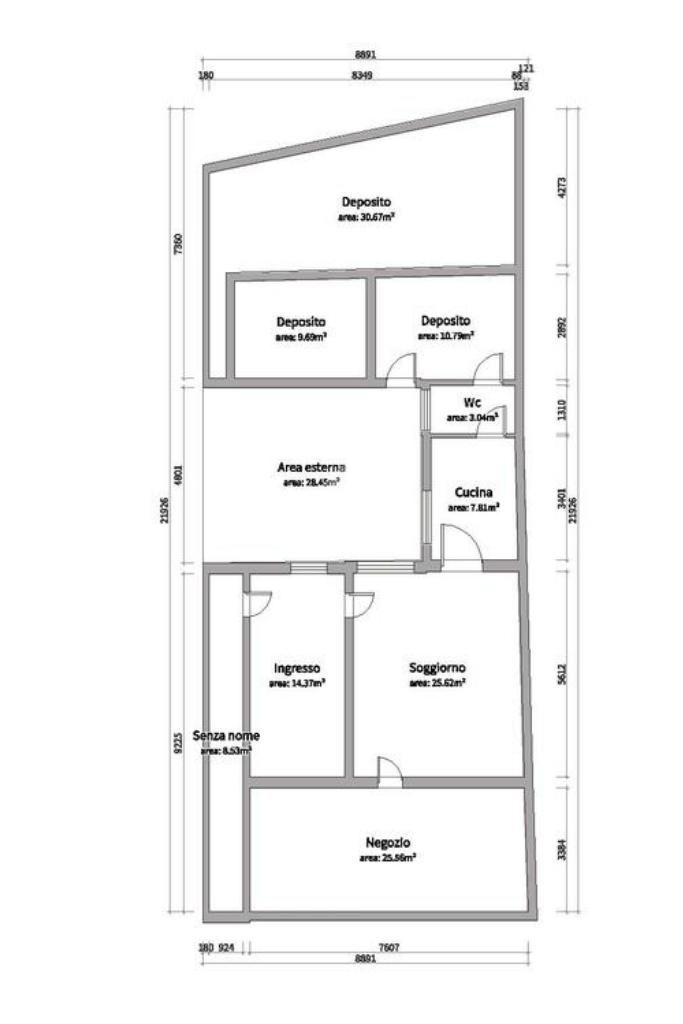 All’esterno si trova un’area scoperta che porta a un deposito di generose dimensioni, ideale da trasformare in dependance, loft o laboratorio.